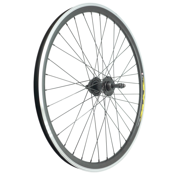 Колесо 26" заднее (32Н), Full Black, обод двойной алюм. б/пист. чёрный, алюм. втулка, под трещотку, под диск 6 отв., с эксцентриком, чёрная