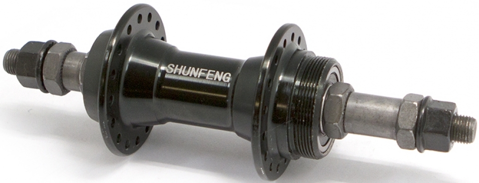 | Втулка MTB задняя алюминиевая под трещотку, 3/8x14Gx32Hx135x170 на промподшипниках, на гайках, чёрная, вес 329г |