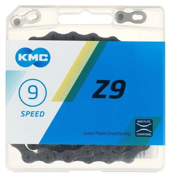 Велосипедная цепь KMC Z9, 1/2X11/128", 116L, 9 ск., серая (арт.:72621)